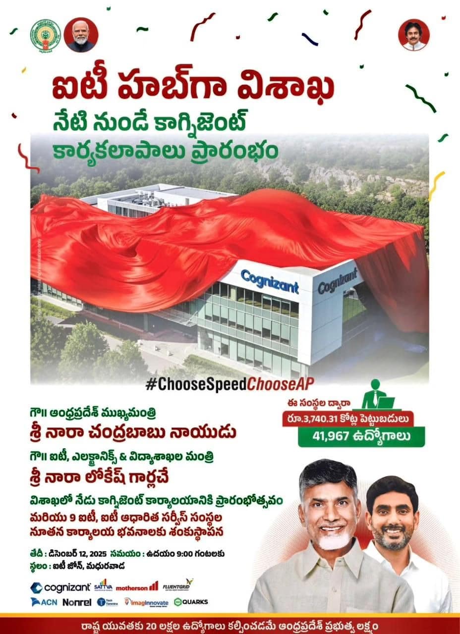 విశాఖలో Cognizant ప్రారంభం: ₹3,740 కోట్ల పెట్టుబడి, 41,967 ఉద్యోగాలు